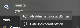 Als voorheen geen communicatieknooppunt verantwoordelijk was, gaat u naar het nieuwe communicatieknooppunt. - Open de Windows-services met beheerdersrechten (druk op de Windows-toets, voer services in en roep met de rechtermuistoets het contextmenu op).