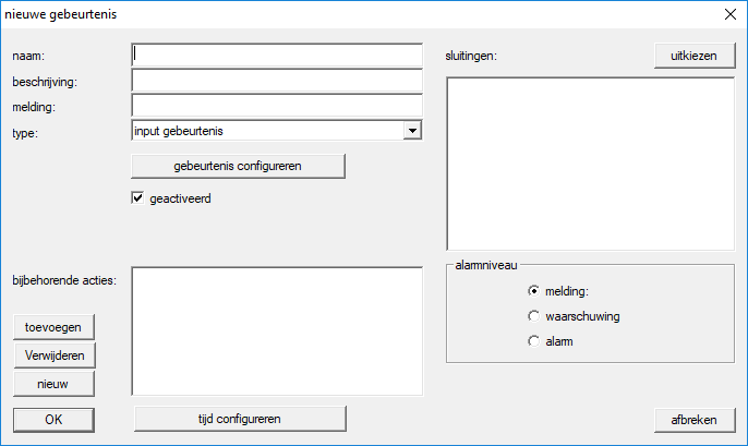 - Het venster input gebeurtenis gaat open.