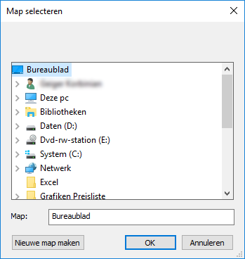 - Het venster Map zoeken gaat open.