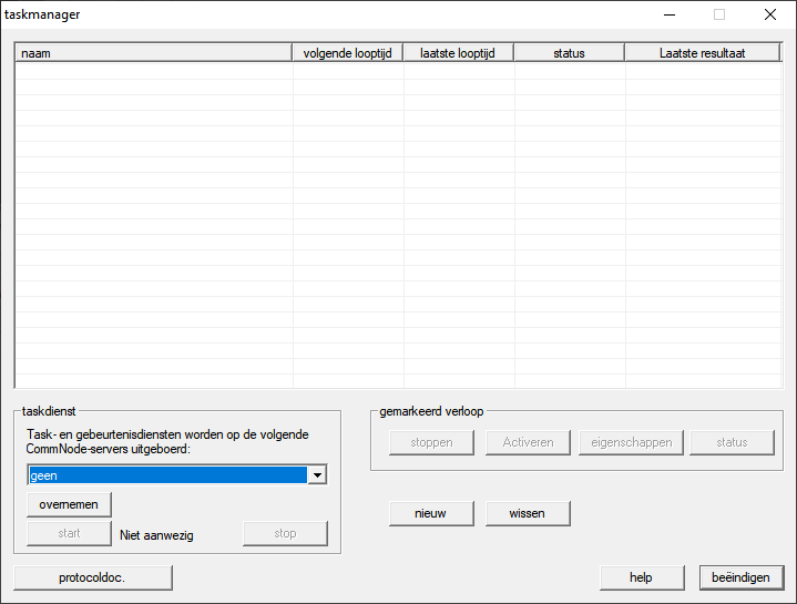 - Zorg ervoor dat in het bereik taskdienst in het dropdownmenu de bijpassende CommNode is geselecteerd.