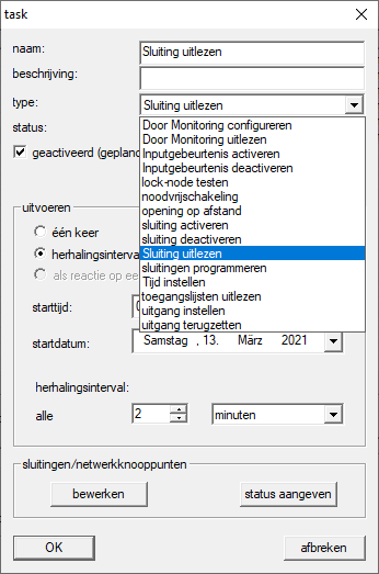 - Sluitstatus van de ingestelde sluitelementen wordt automatisch opgevraagd.