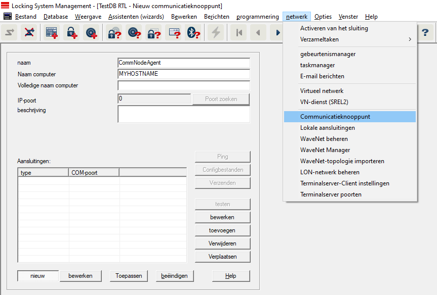 - Voer in het invoerveld Naam een vrij te kiezen naam voor het communicatieknooppunt in, bijv. CommNodeAgent.