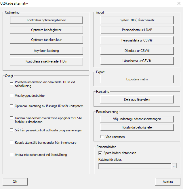 - Fönstret Utökade alternativ stängs.