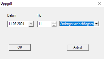 - Ange startdatum och tidpunkt då behörighetsändringarna ska aktiveras.
