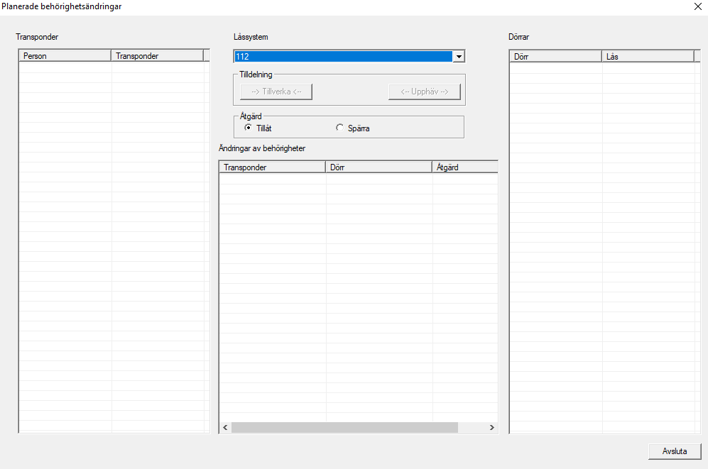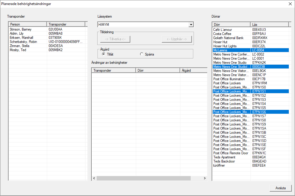 - I området Dörrar markerar du låsen med de behörigheter som ska ändras (flera kan väljas).