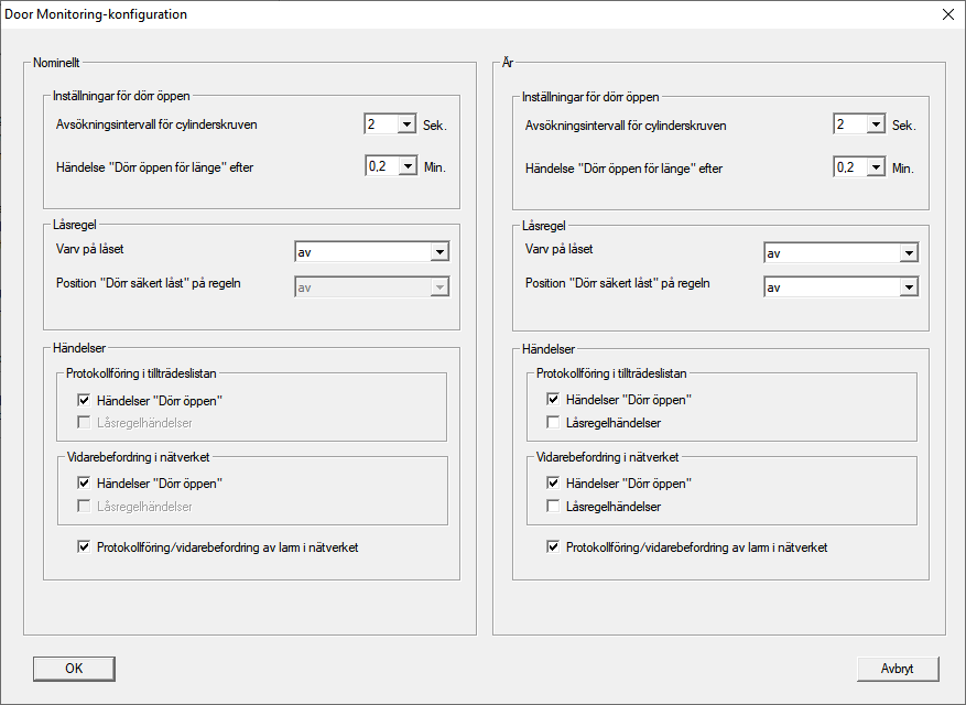 Med knappen ”Monitoring-konfiguration” i registerfliken ”Konfiguration/Data” för låset kan DoorMonitoring-funktionerna för låscylindern konfigureras (Se även Driftsättning av DoorMonitoring-lås).
