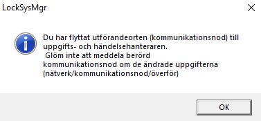 - I LSM visas information om att du har ändrat den kommunikationsnod som styr för uppgifts-/händelsehanteraren,