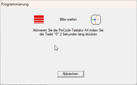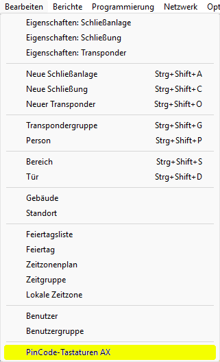 Programmering av PinCode-knappsats AX endast tillgänglig via övre menyraden