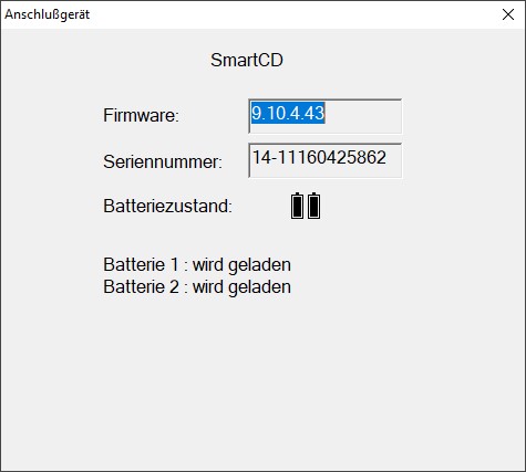 - Fenster Anschlußgerät öffnet sich und zeigt Informationen über das angeschlossene Programmiergerät.