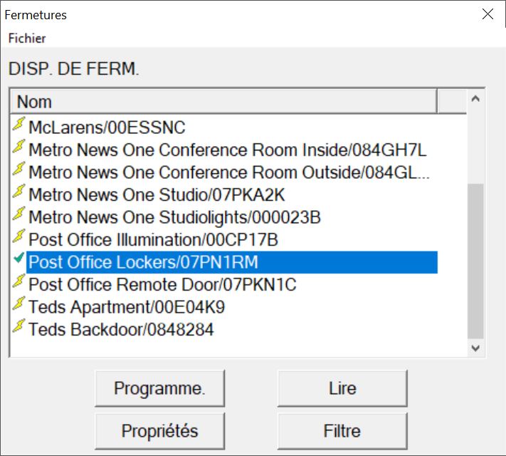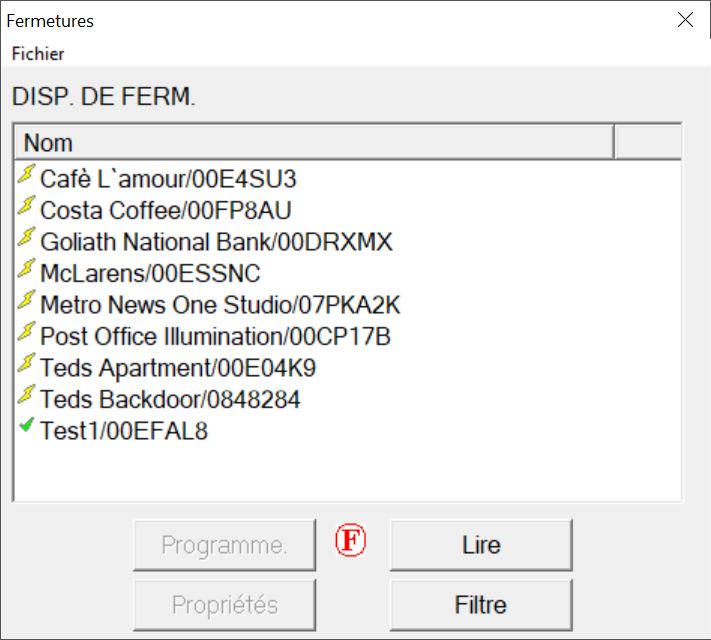 - Sélectionnez la fermeture que vous voulez programmer.