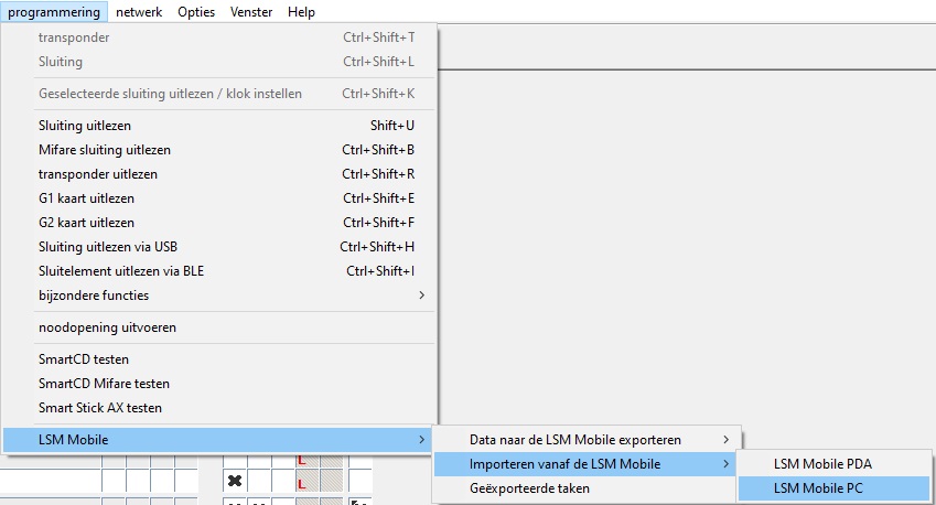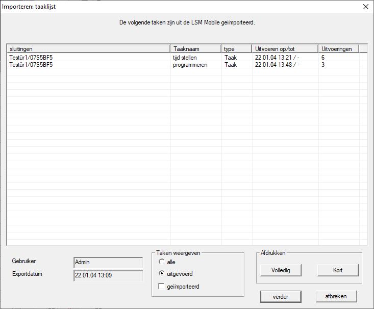 Pas na het opnieuw importeren van de gegevens komt de toestand in de databank weer overeen met de daadwerkelijke toestand in de sluitelementen. Importeer de gegevens daarom weer in de LSM, nadat u alle taken in LSM Mobile hebt uitgevoerd.