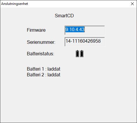 - Fönstret Anslutningsenhet öppnas och visar information om den anslutna programmeringsenheten.