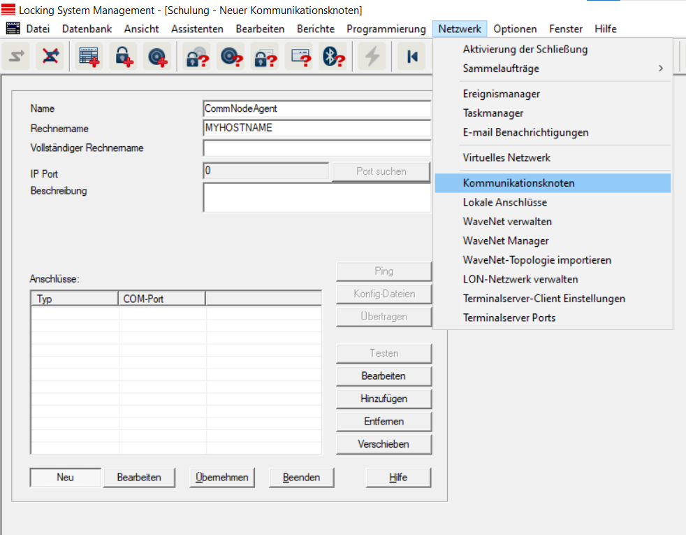- Geben Sie im Eingabefeld Name einen frei wählbaren Namen für den Kommunikationsknoten ein, z.B. CommNodeAgent.