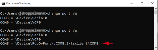 - Det andra kommandot visar resultatet med ansluten SmartCD.MP/SmartCD.HF. En ny port har tillkommit.