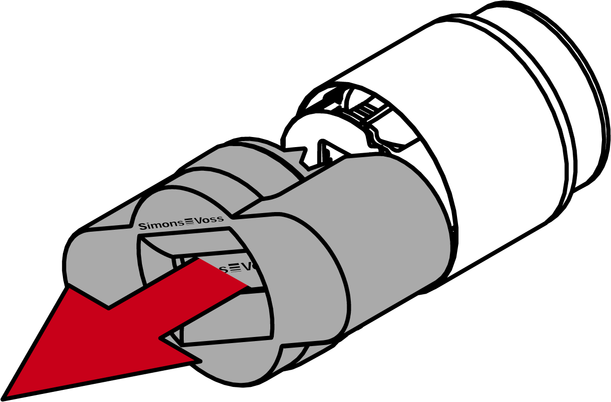 De Digital Cylinder AX kan zonder voeding niet vrijschakelen of uitkoppelen. Terwijl de batterijen gedemonteerd zijn, behoudt de Digital Cylinder AX dan ook zijn actuele status en de bewaarde data (programmering en opgeslagen protocollen).
