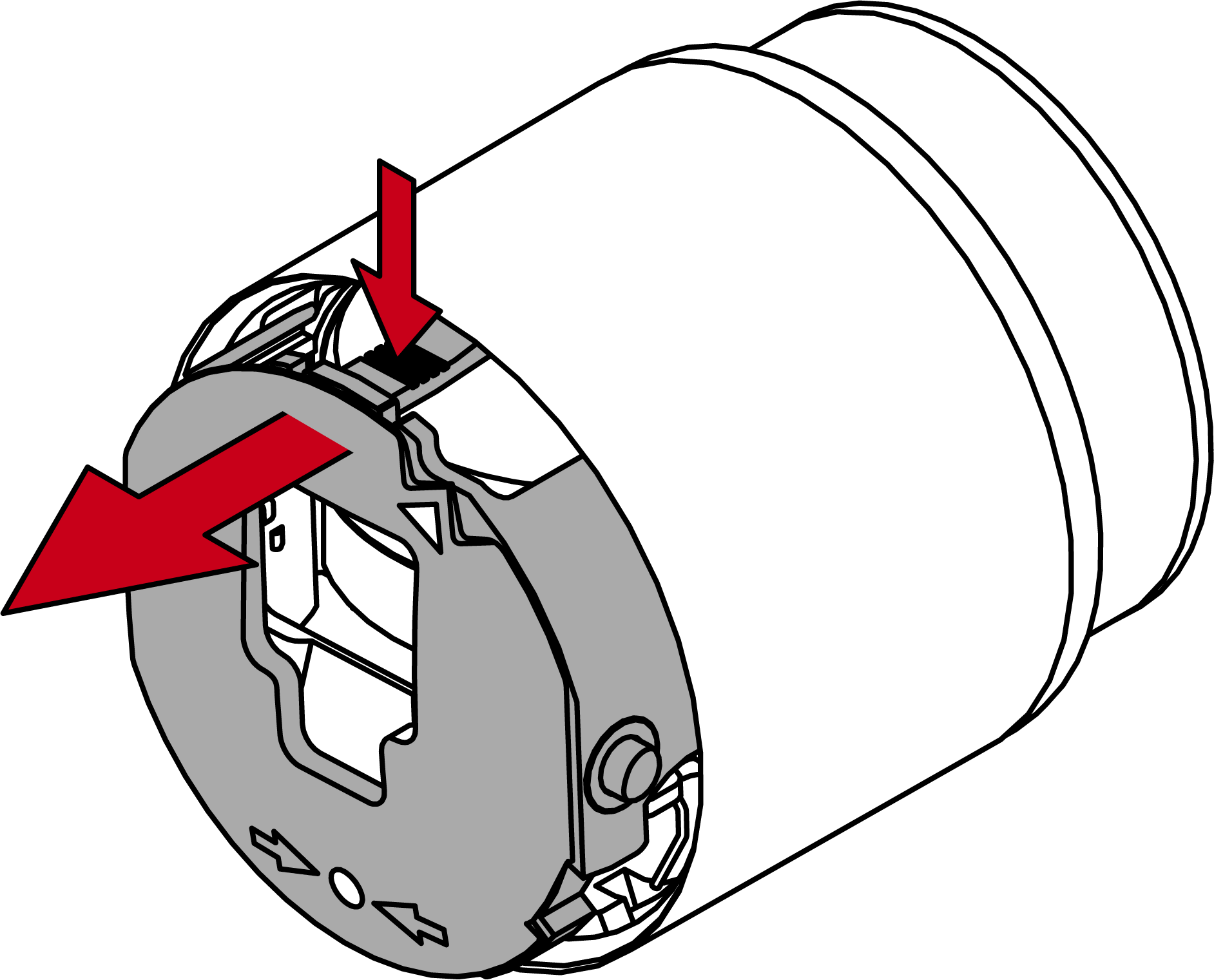 - Zet het speciale gereedschap dusdanig op de knop dat het logo parallel is met de inkeping.