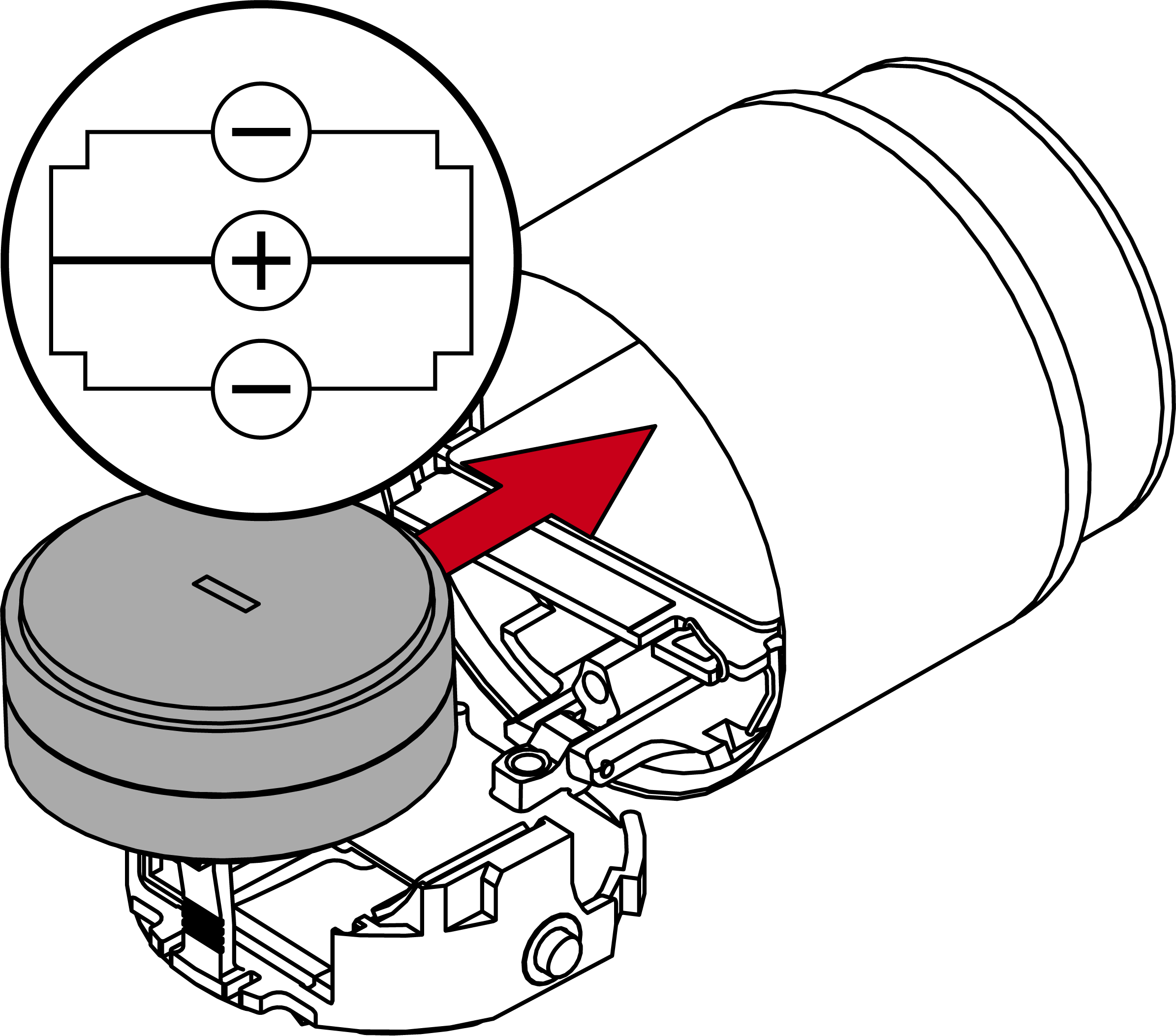- Plaats de nieuwe batterijen (Positieve pool in het midden).