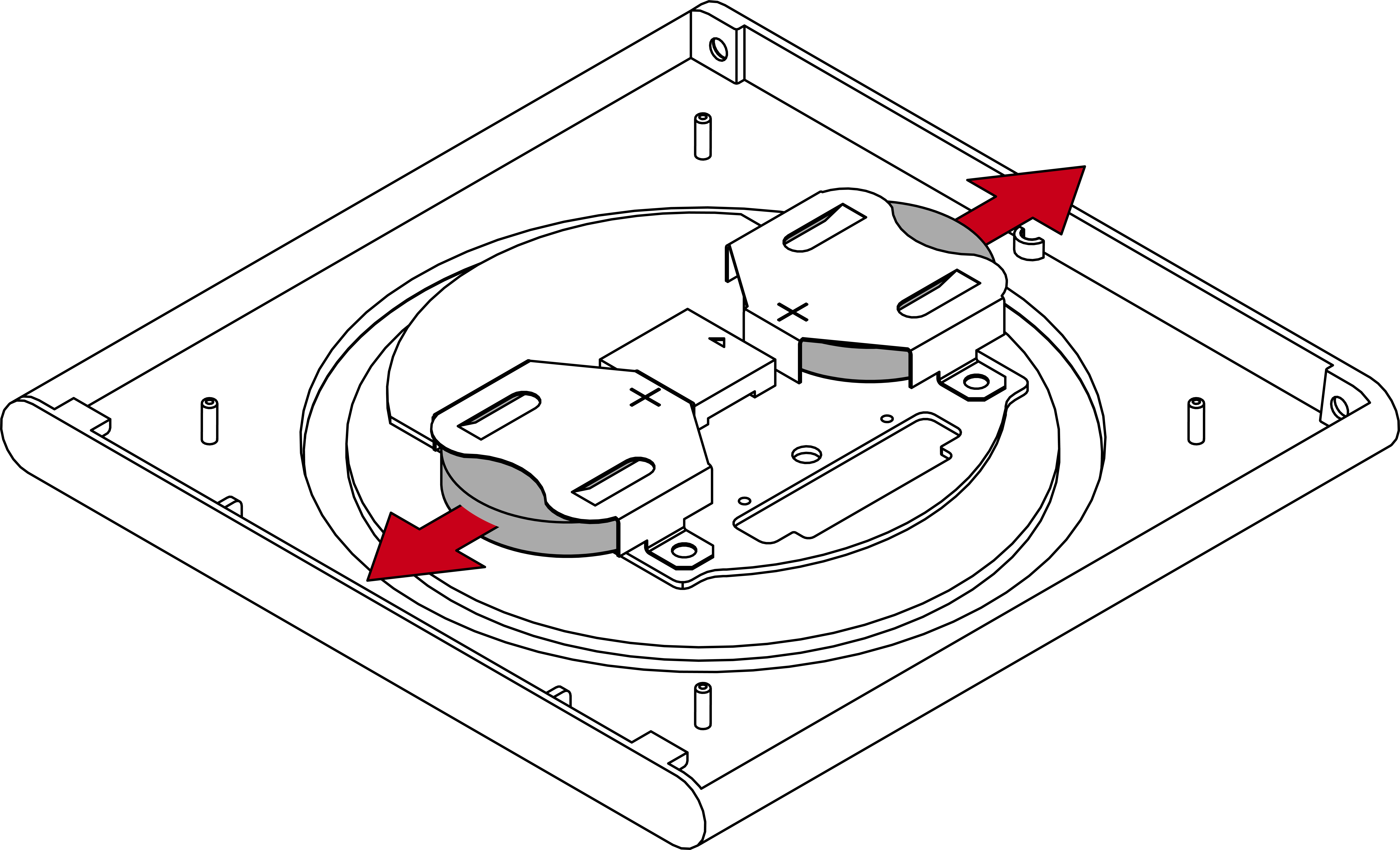 - Schroef beide schroeven volledig uit de bodem van de behuizing.