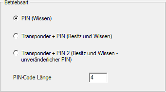 Der Modus gilt für die gesamte Schließanlage. Wenn er nachträglich geändert wird, dann entsteht erheblicher Aufwand (Programmierbedarf an allen im System vorhandenen PinCode-Terminals, Vergabe neuer User-PINs, Ausgabe neuer Transponder...).