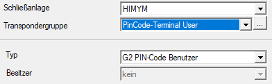 - Wählen Sie im Dropdown-Menü den Eintrag G2 PIN-Code Benutzer aus.
