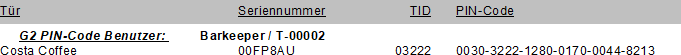 Sie geben für diesen Fall einen Bericht mit der benötigten Ersatz-PIN aus. Ihre User ändern mit dieser Ersatz-PIN selbständig ihre User-PIN am PinCode-Terminal.