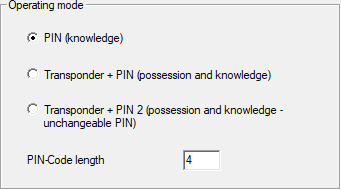 The mode applies to the entire locking system. If it is subsequently changed, there is considerable effort involved (programming requirement at all PIN code terminals in the system, issuing new User PINs, issuing new transponders, etc.).
