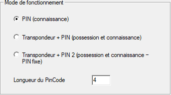 Le mode est réglé une fois dans le logiciel LSM pendant la mise en service et s'applique à tous les terminaux pour code PIN (voir aussi Aperçu du mode).