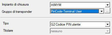 - Creare un gruppo di transponder con un nome adatto, ad esempio Utente terminale PinCode.