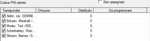 - Selezionare nell’area Codice PIN utente tutti gli utenti, i cui User PIN desiderate emettere nel rapporto.