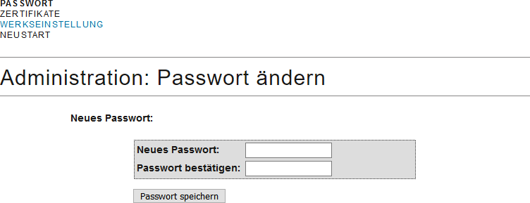 - Öffnen Sie über ADMINISTRATION die Registerkarte PASSWORT.