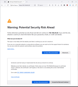 Derfor kan der blive vist en sikkerhedsadvarsel, første gang du kalder konfigurationsgrænsefladen, f.eks:
