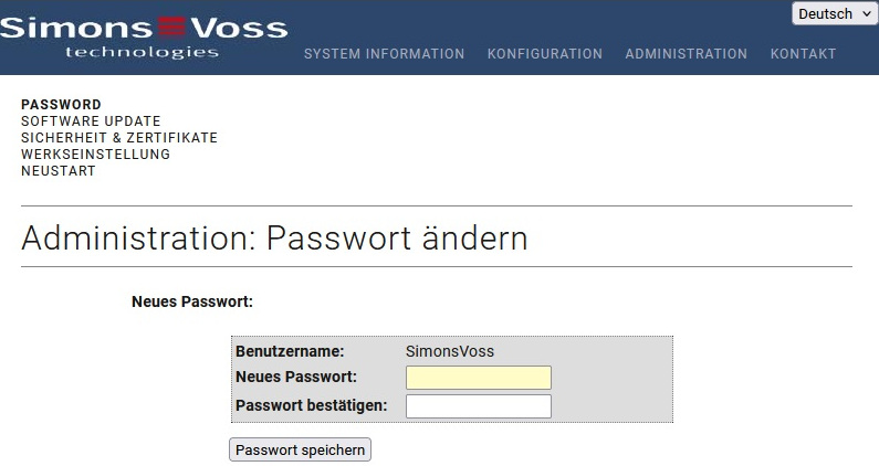 - Nach 10 aufeinander folgenden falschen Passwort-Eingaben wird die Anmeldung an der Konfigurationsoberfläche für 5 Minuten gesperrt.