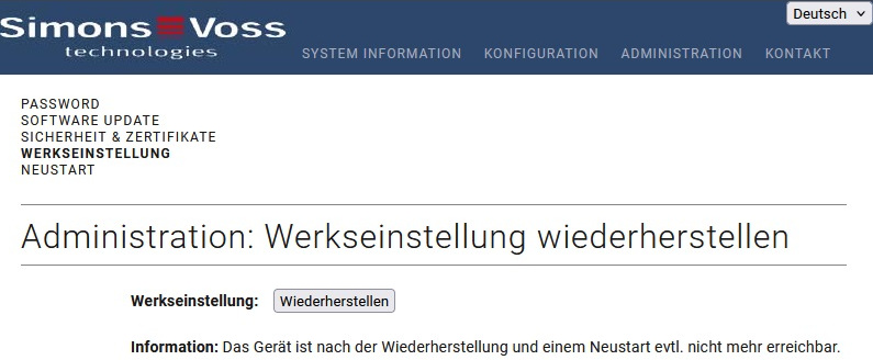Mit dieser Seite kann der RouterNode 3 vollständig zurückgesetzt werden (WaveNet-Konfiguration, TCP/IP-Konfiguration und Passwort).