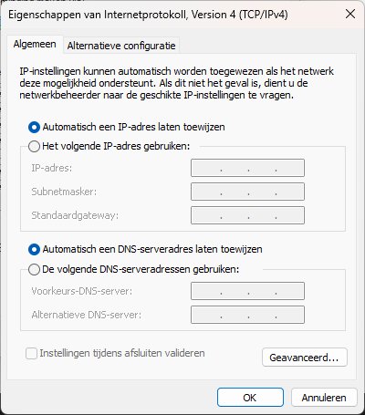 eerste configuratie met DHCP | eerste configuratie vooraf zonder DHCP (Auto-IP) |