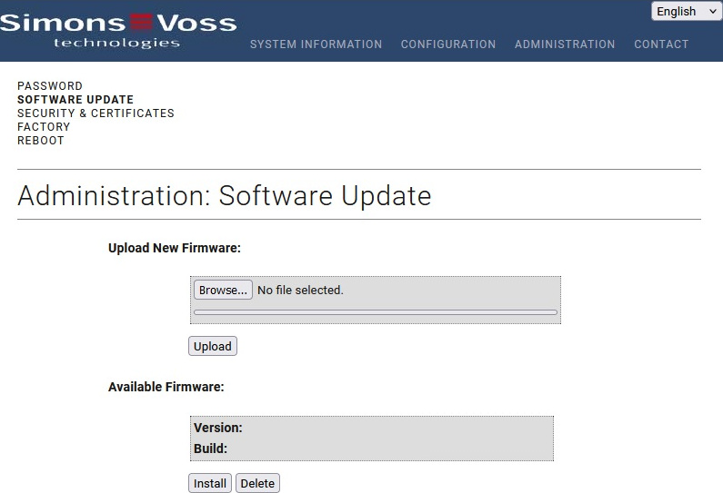 Firmware till RouterNode 3 kan uppdateras direkt via konfigurationsgränssnittet. De firmware-avbildningar som behövs tillhandahålls i krypterad och signerad form av SimonsVoss.