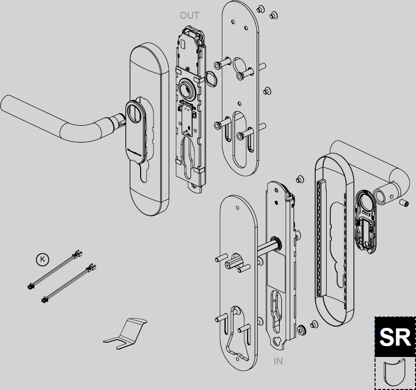 - 1x Adapterplaat buitenbeslag