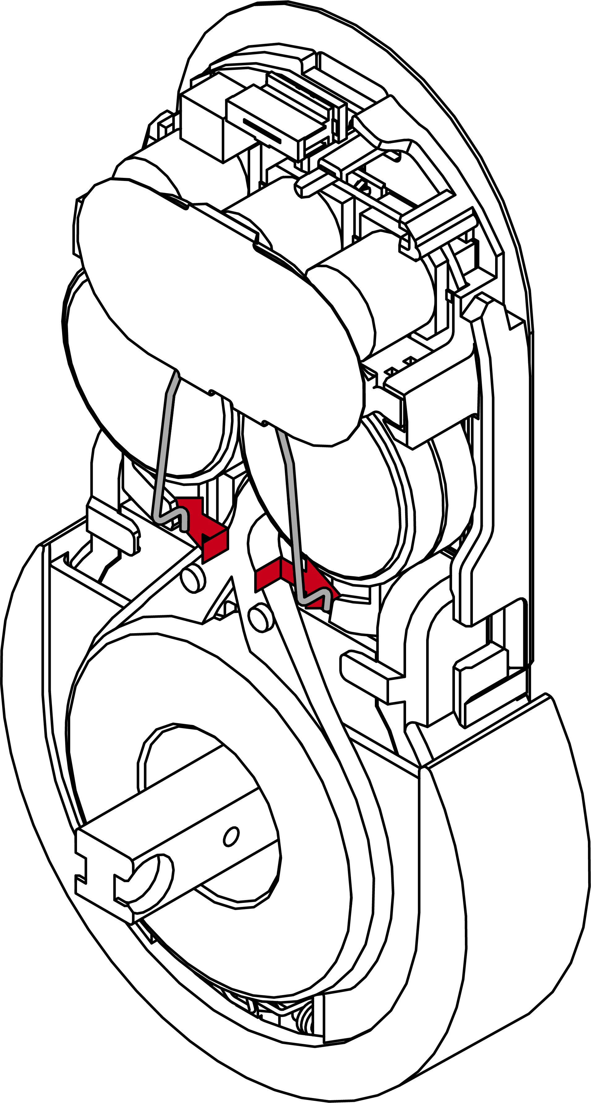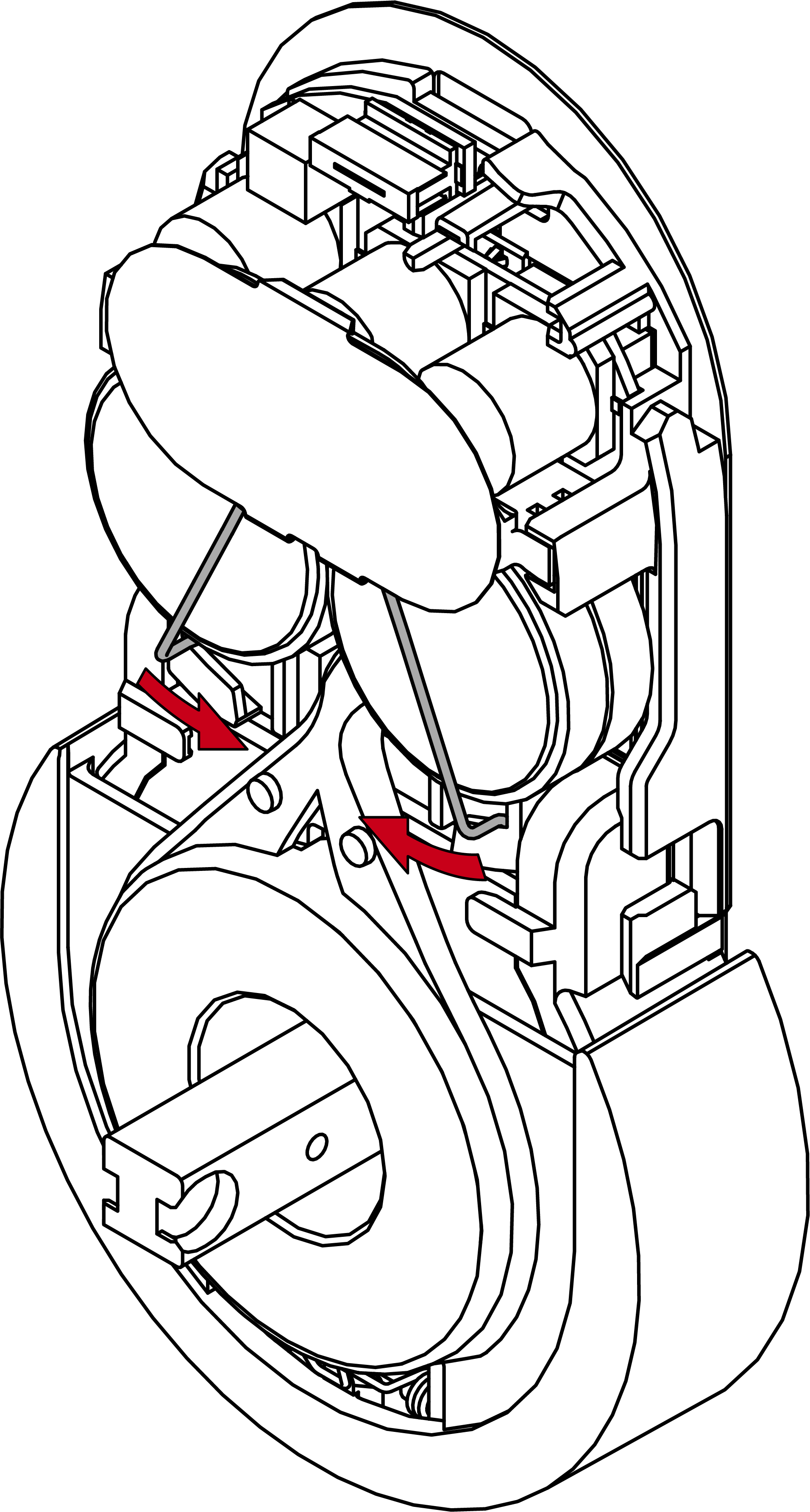 - Insérez l’outil spécial dans l’inlay du cache de protection de la ferrure.