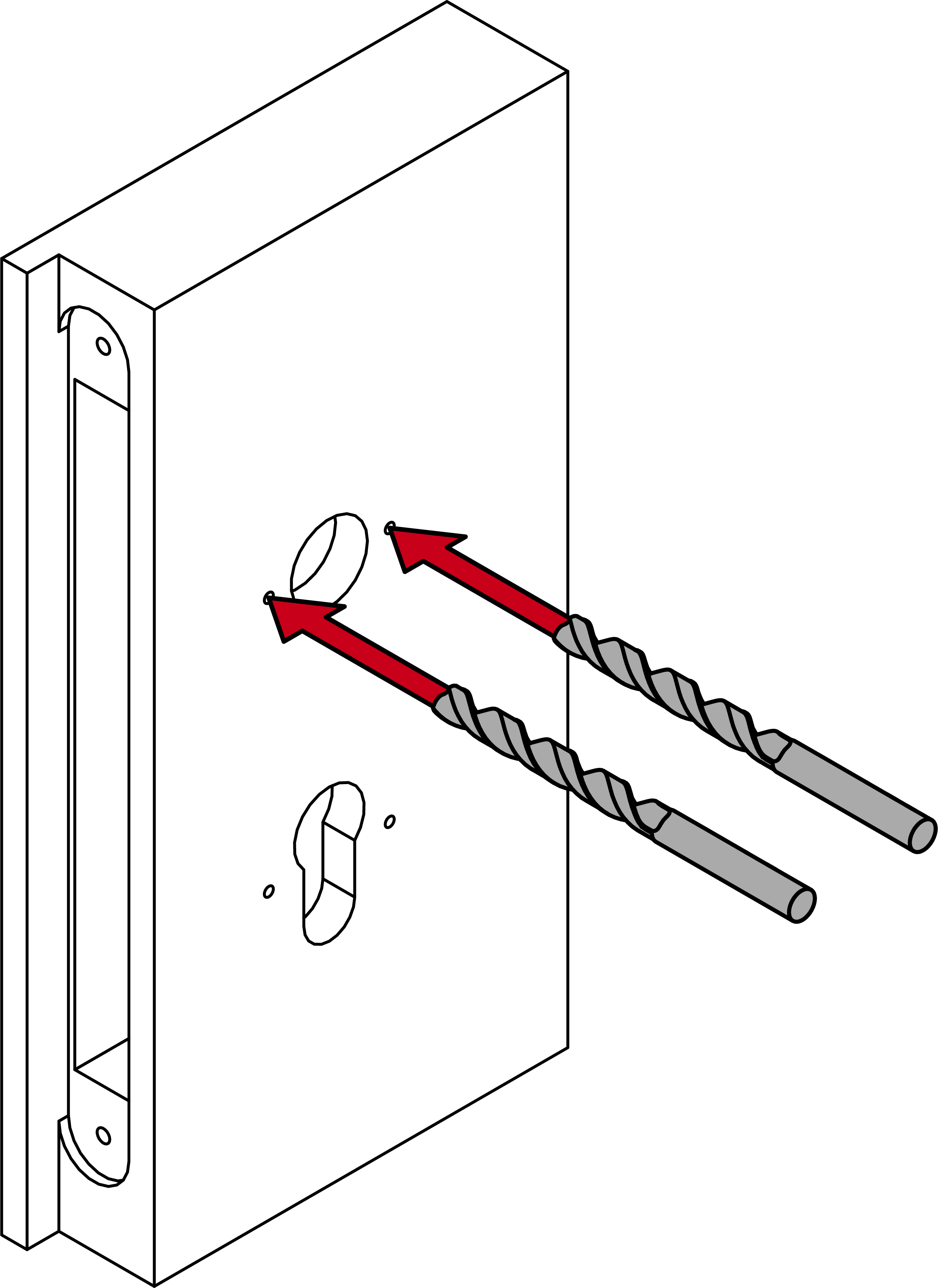 - Présence d’un foret approprié (en fonction du diamètre du trou de la serrure à mortaise : 8,5 mm/9,5 mm/10,5 mm).
