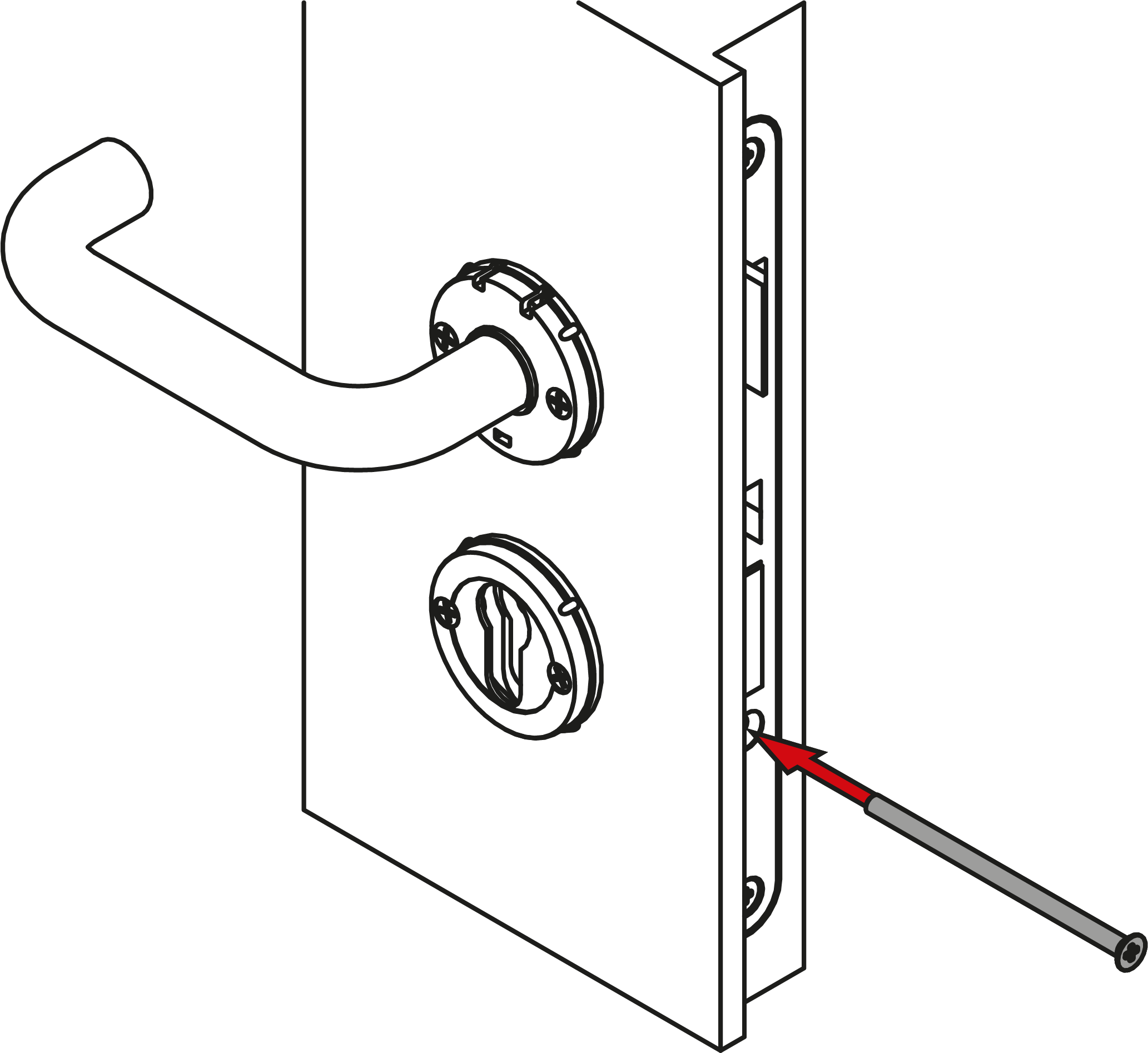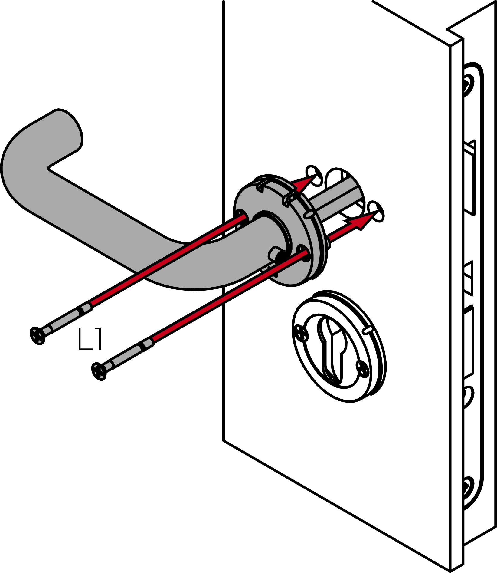- Insérez la ferrure avec le carré dans la porte. Si nécessaire, utilisez des douilles d’adaptation.