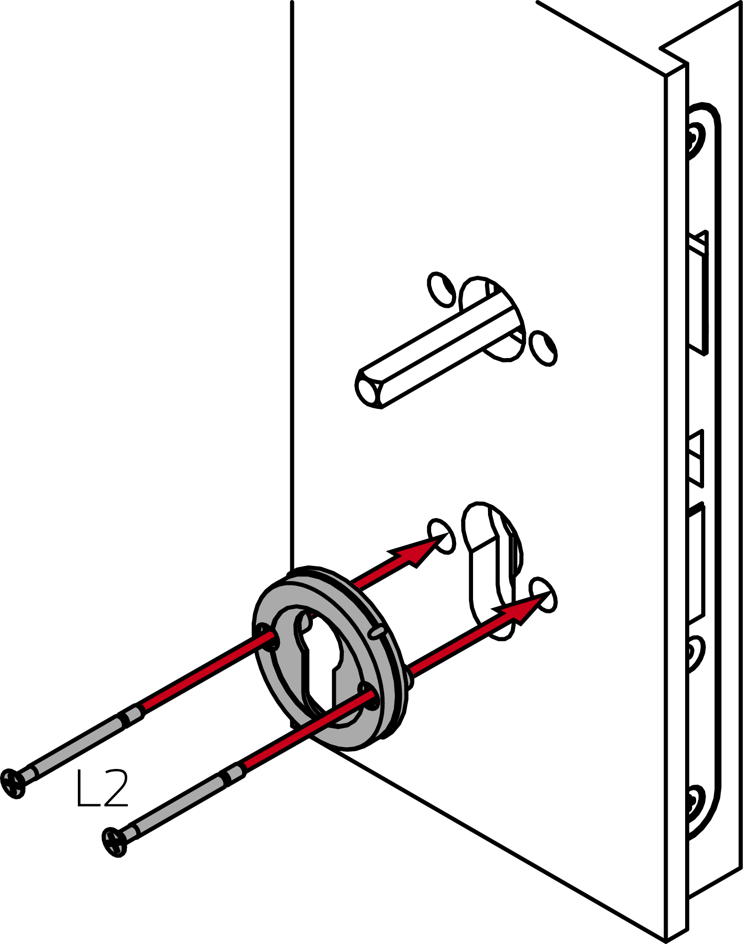 - Fixez la béquille intérieure à l’aide des vis L1 (PH2, couple 1,1 Nm).