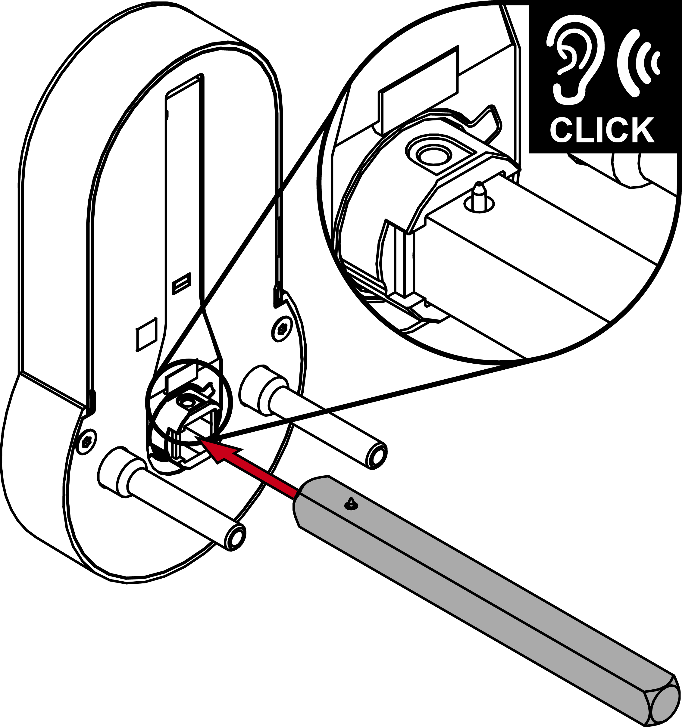 - La broche s’enclenche dans le logement.