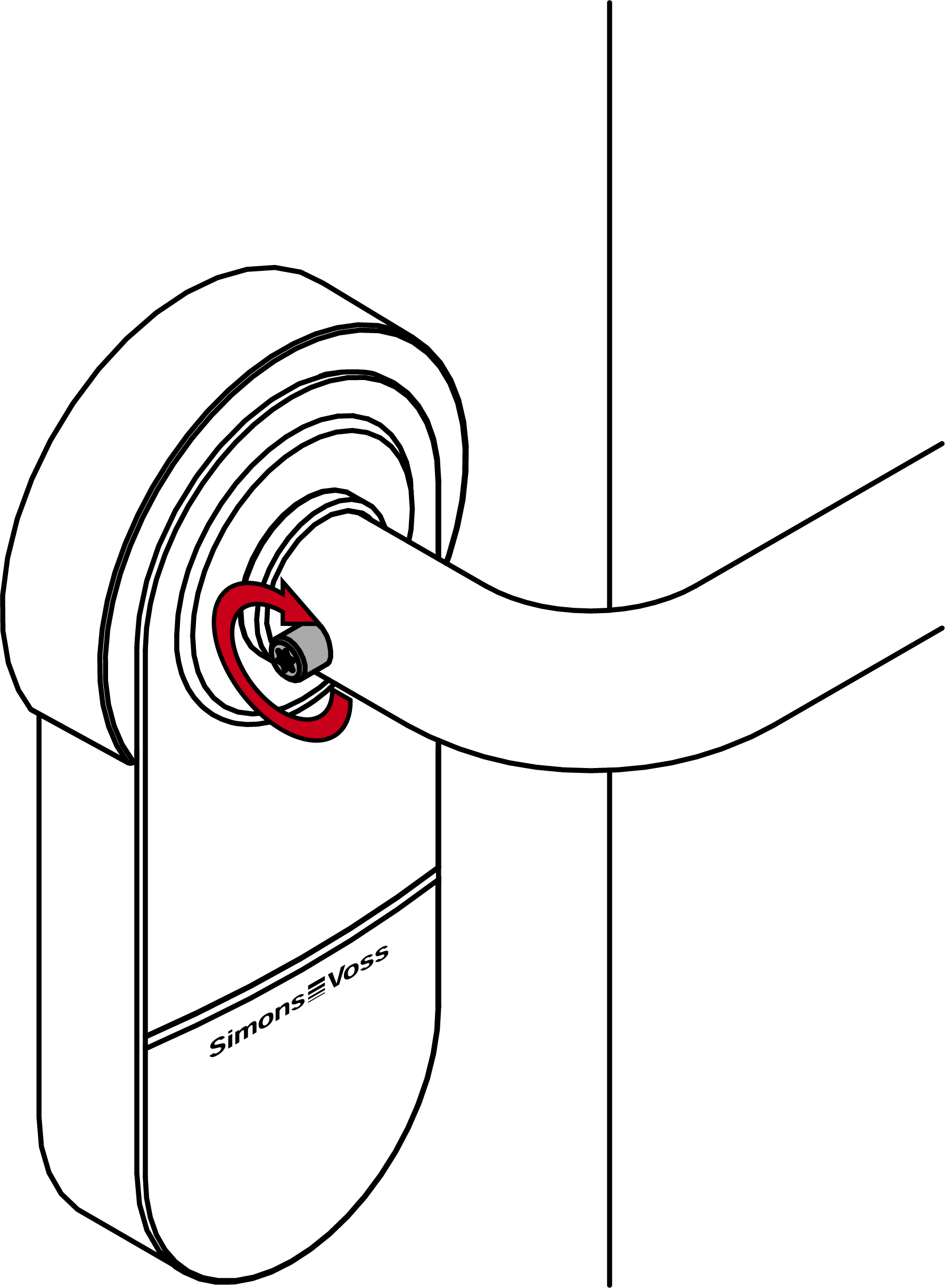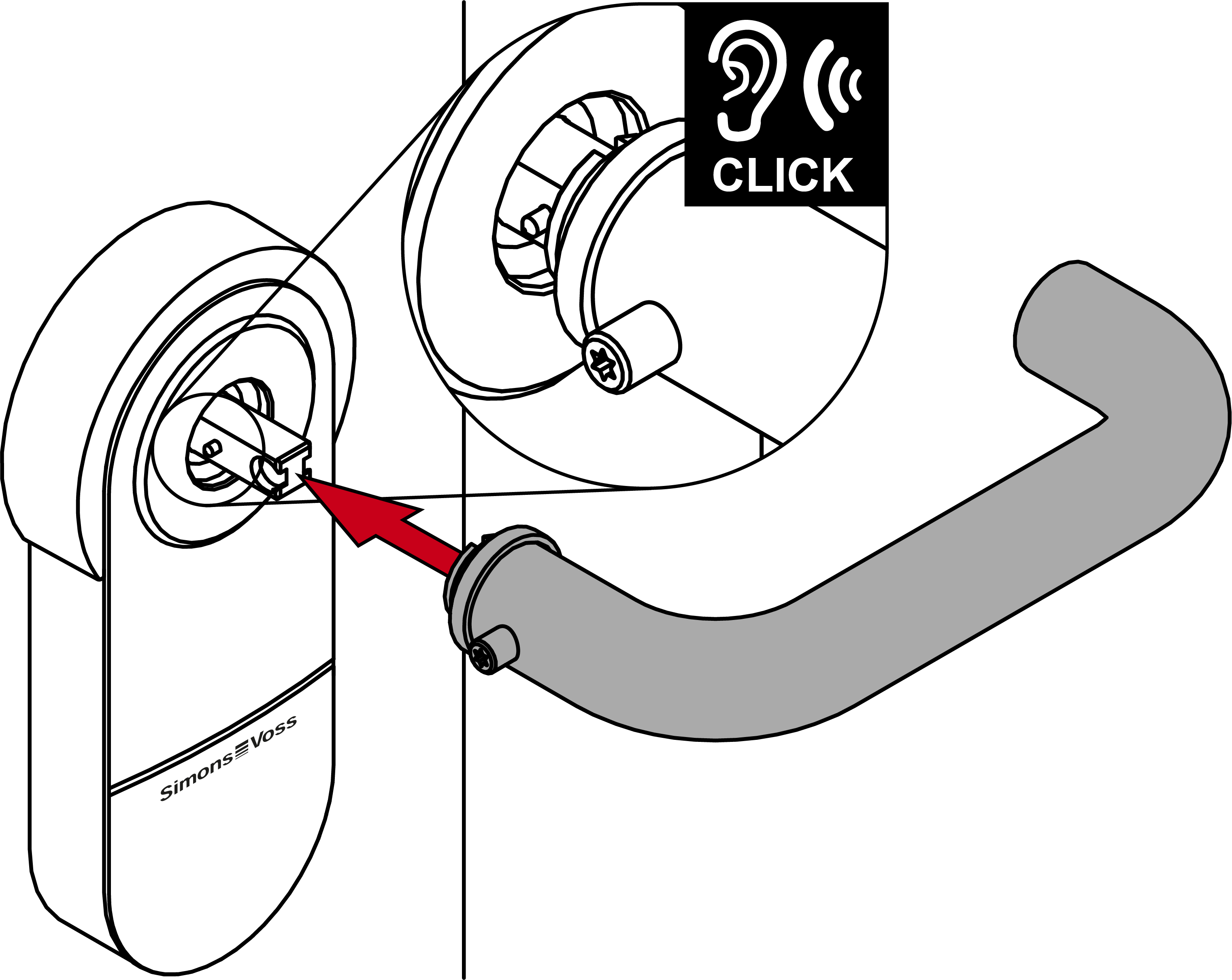 - Pour carré de 7 mm : Placez la douille d’adaptation dans le logement carré de la béquille intérieure de manière à ce que l’évidement soit orienté vers la vis sans tête.