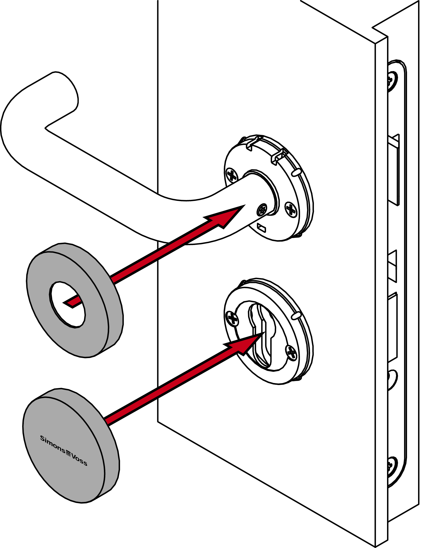 - Vissez la base de la rosace sur l’ouverture du cylindre de fermeture avec les vis L2 (PH2, couple : 1,1 Nm).