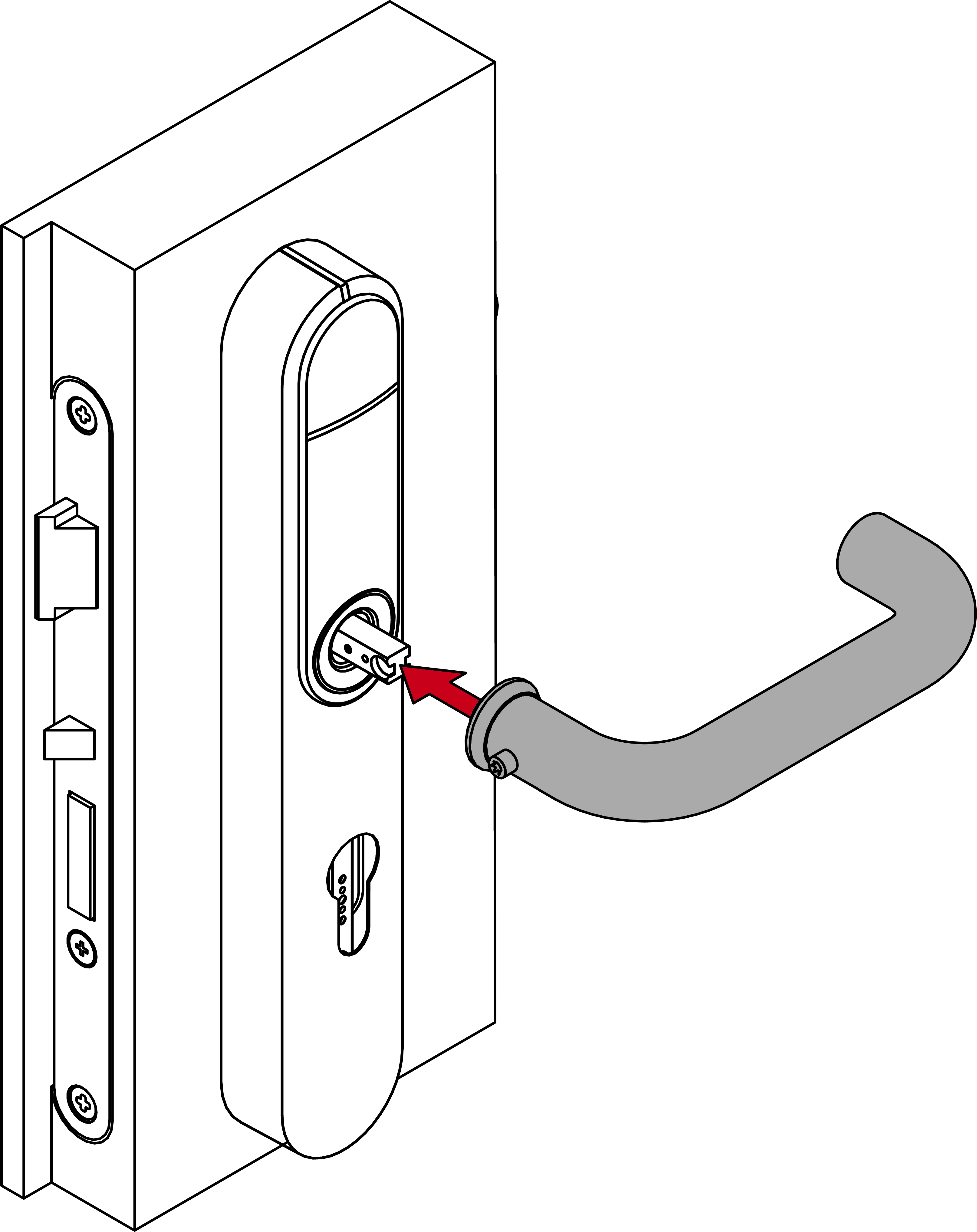 - Stecken Sie den Vierkant mit der ringfreien Seite bis zum Anschlag in die Tür.