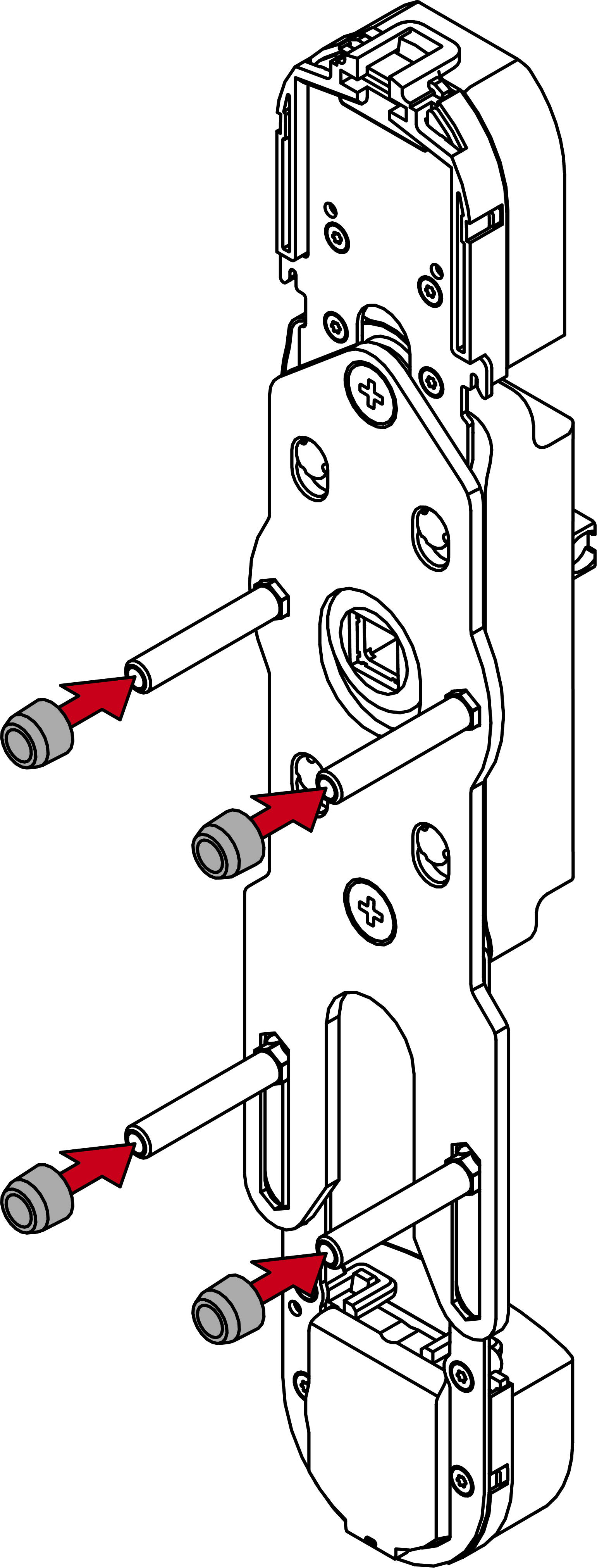 - Schrauben Sie die Innendrücker-Einheit an den Hülsenmuttern fest (PH2, Drehmoment 1,1 Nm).