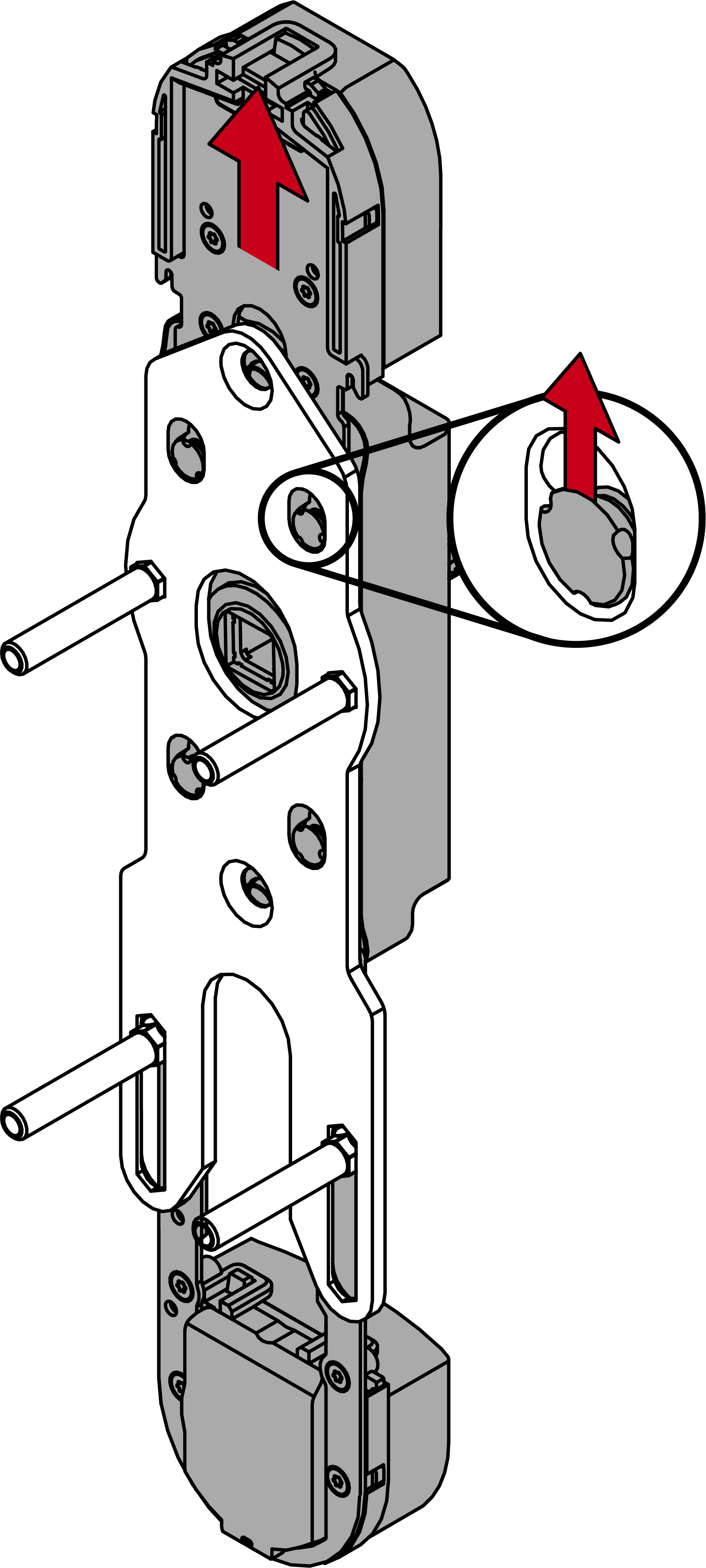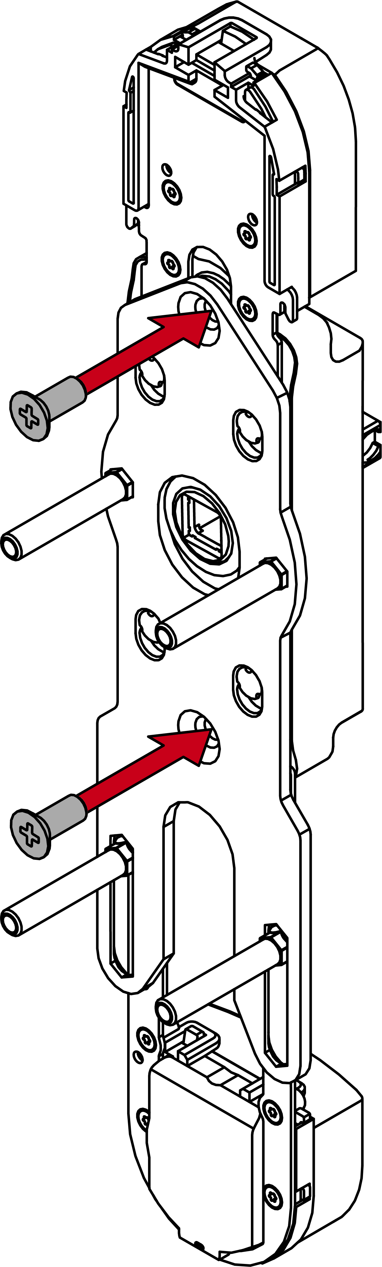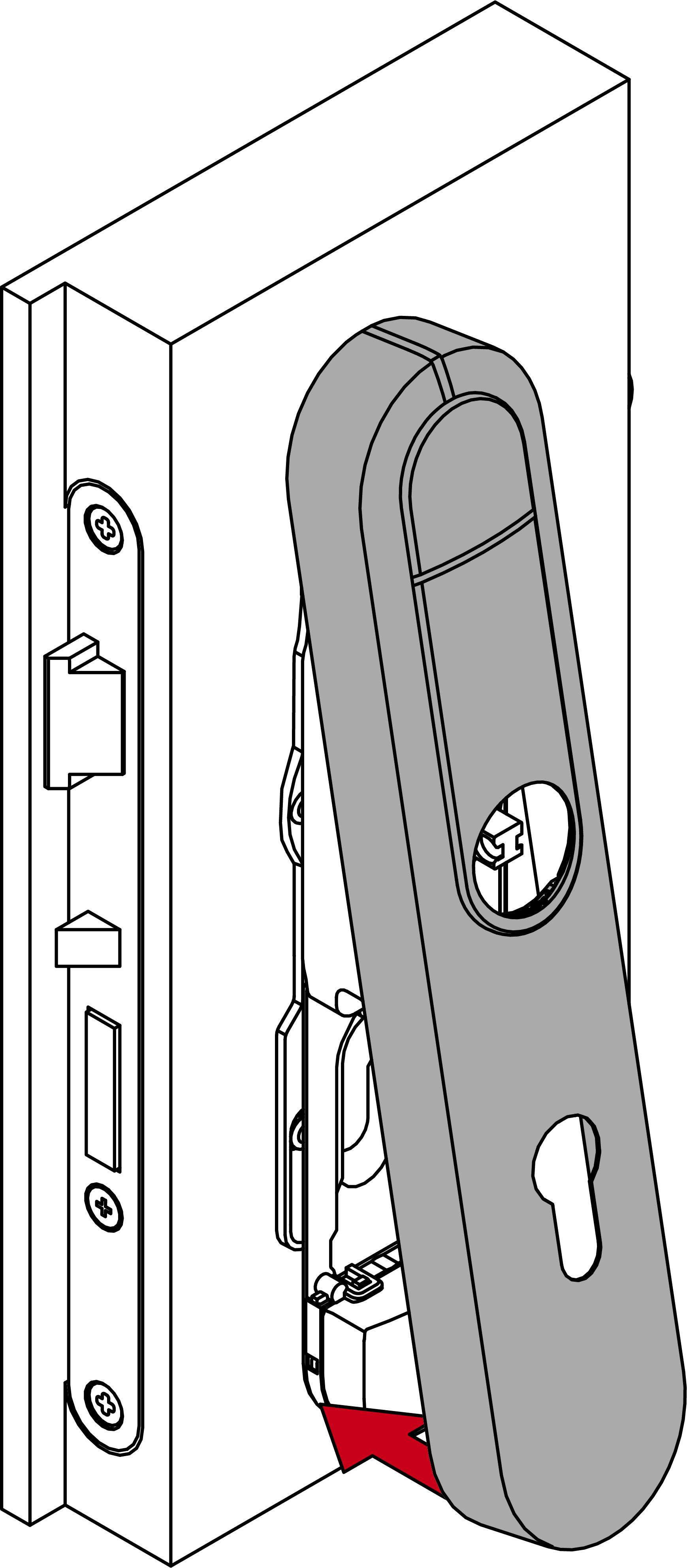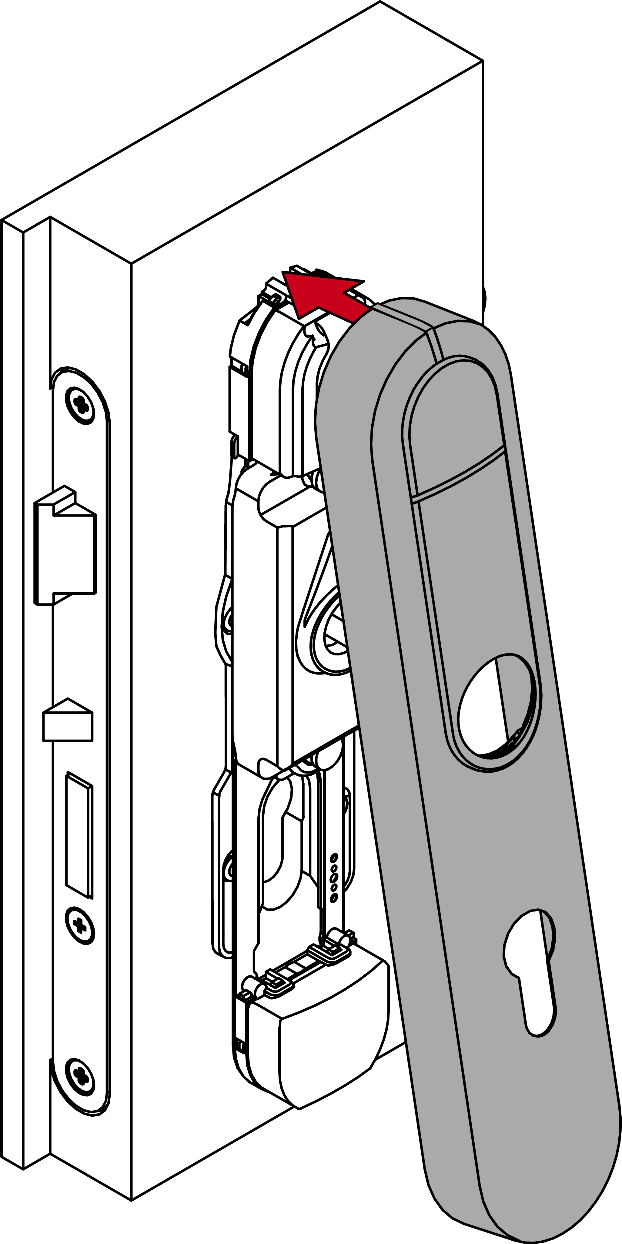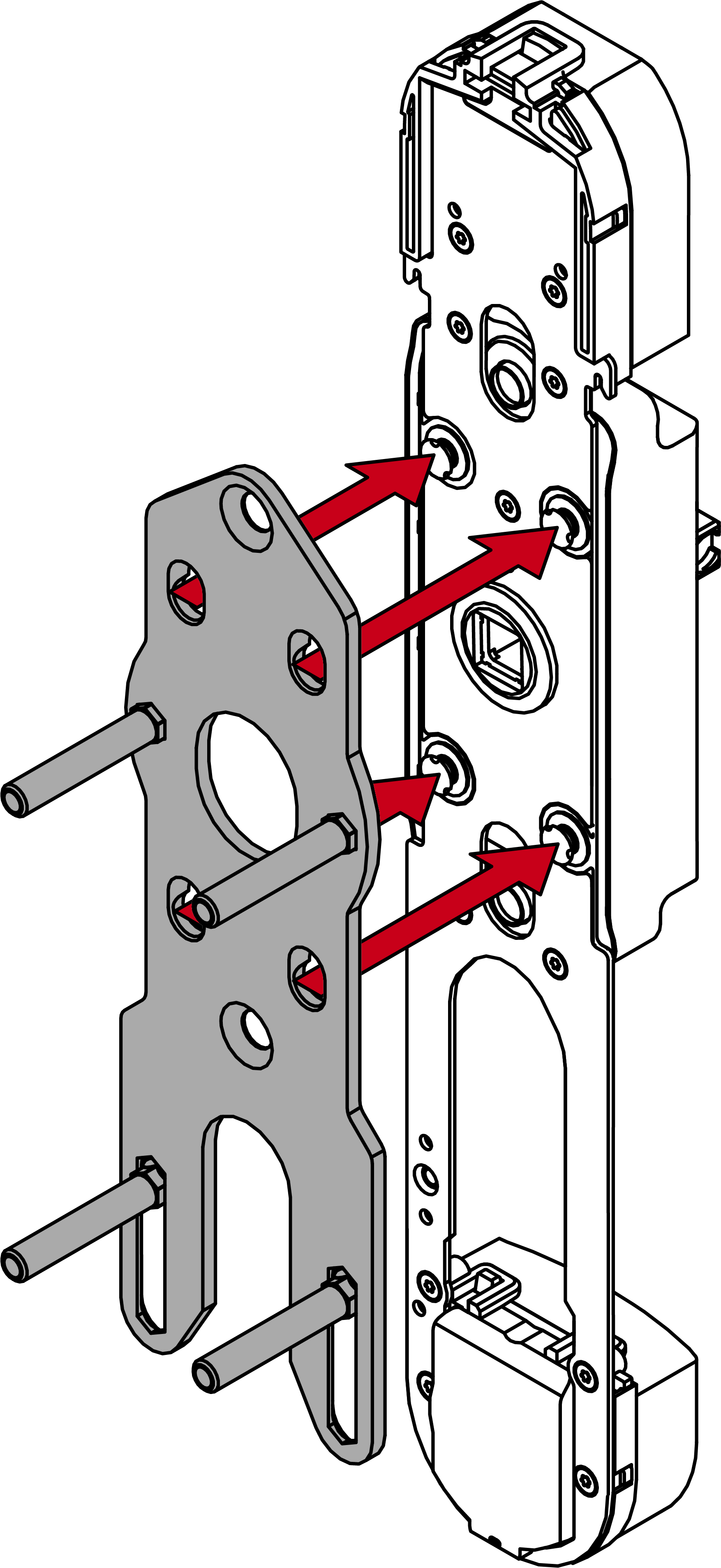 - Stecken Sie den Modulträger mit der Fixierplatte in die Tür-Außenseite.