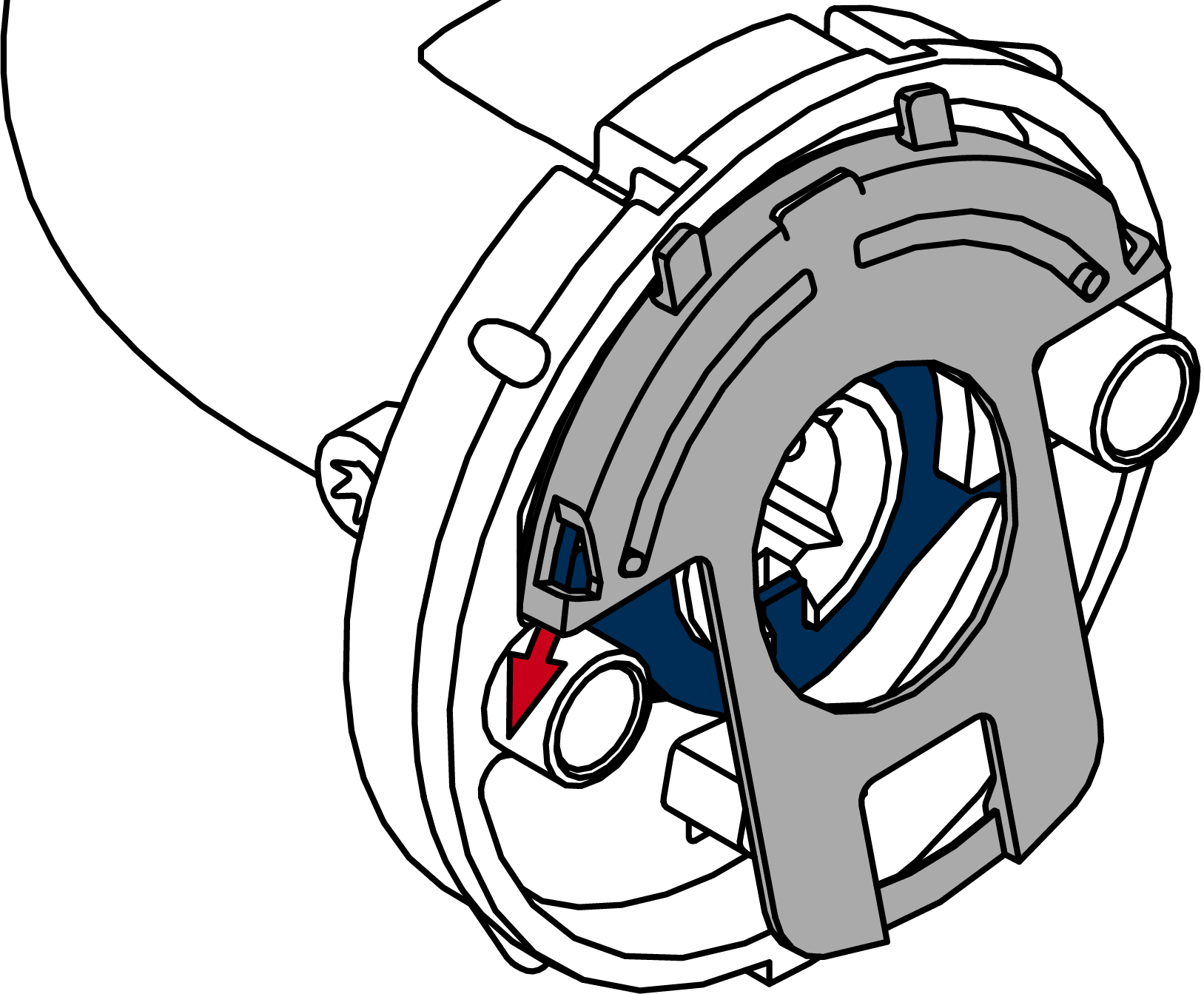 - Schieben Sie die Nase des Federelements in die Aufnahme der Rosette.