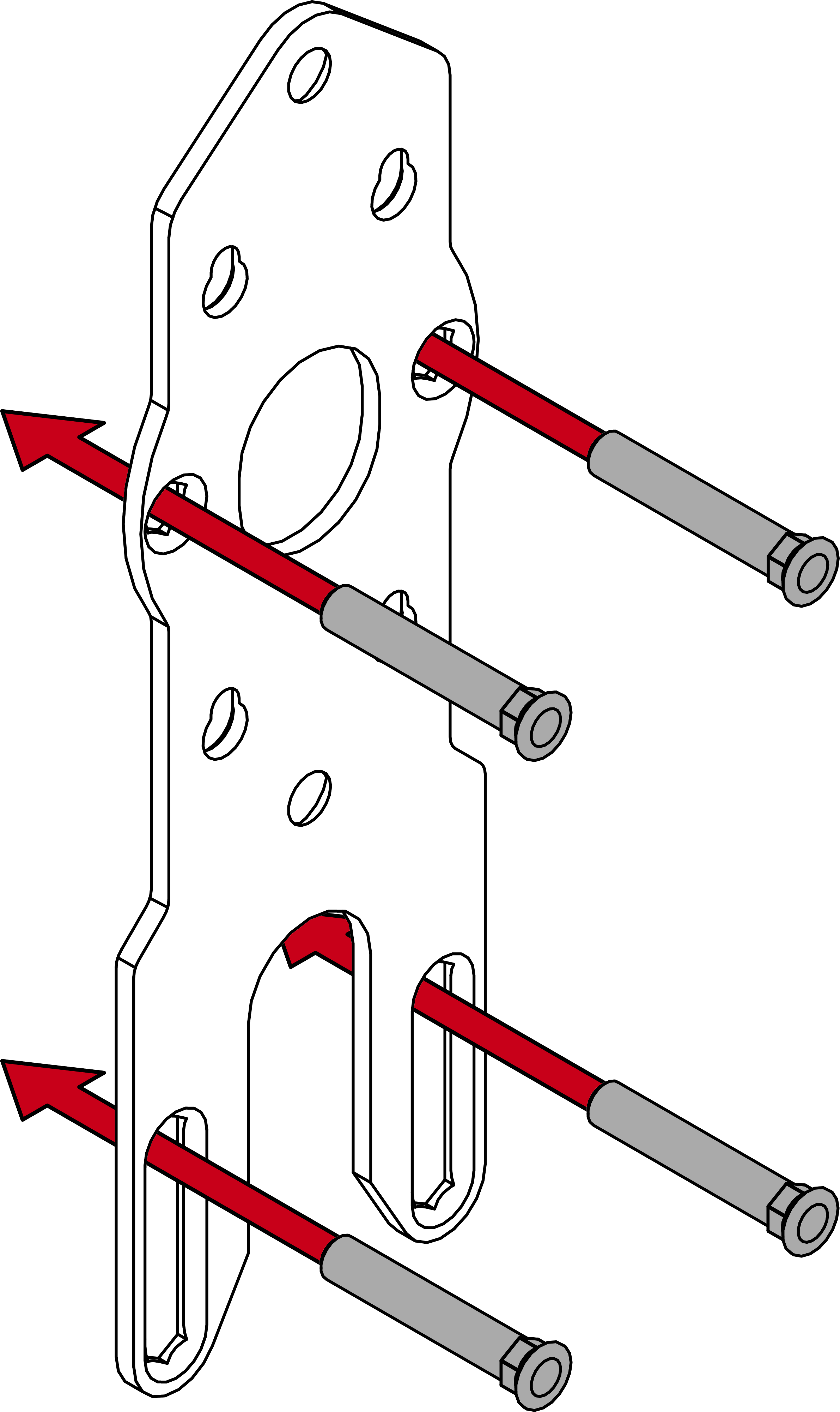 - Setzen Sie die Hülsenmuttern in die Fixierplatte ein.