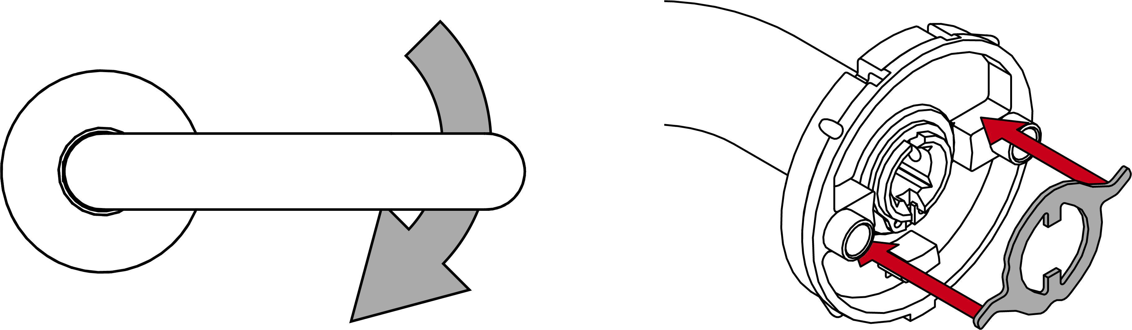- Bestimmen Sie die gewünschte Drehrichtung Ihres Innendrückers.