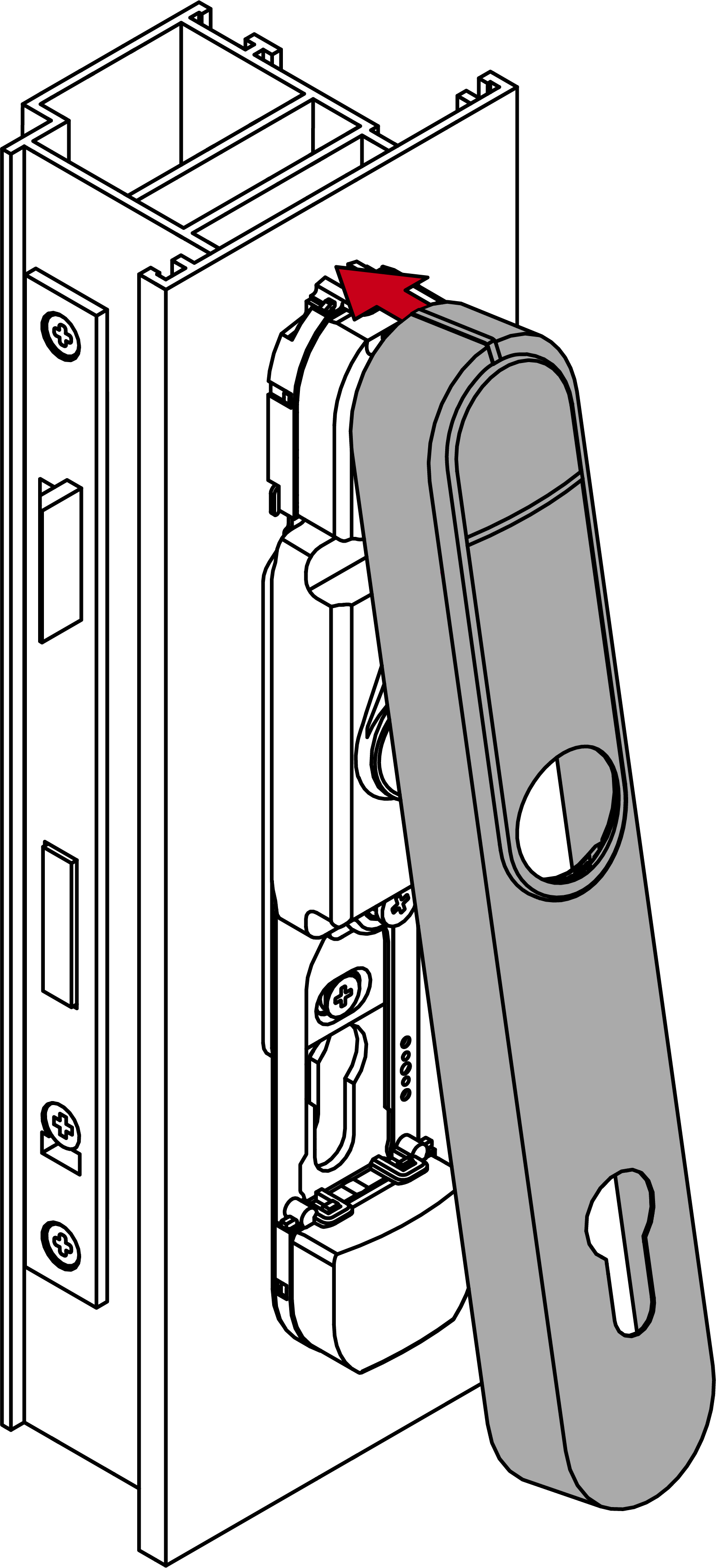 - Drücken Sie das Cover gegen die Tür und schieben Sie es gleichzeitig nach oben.